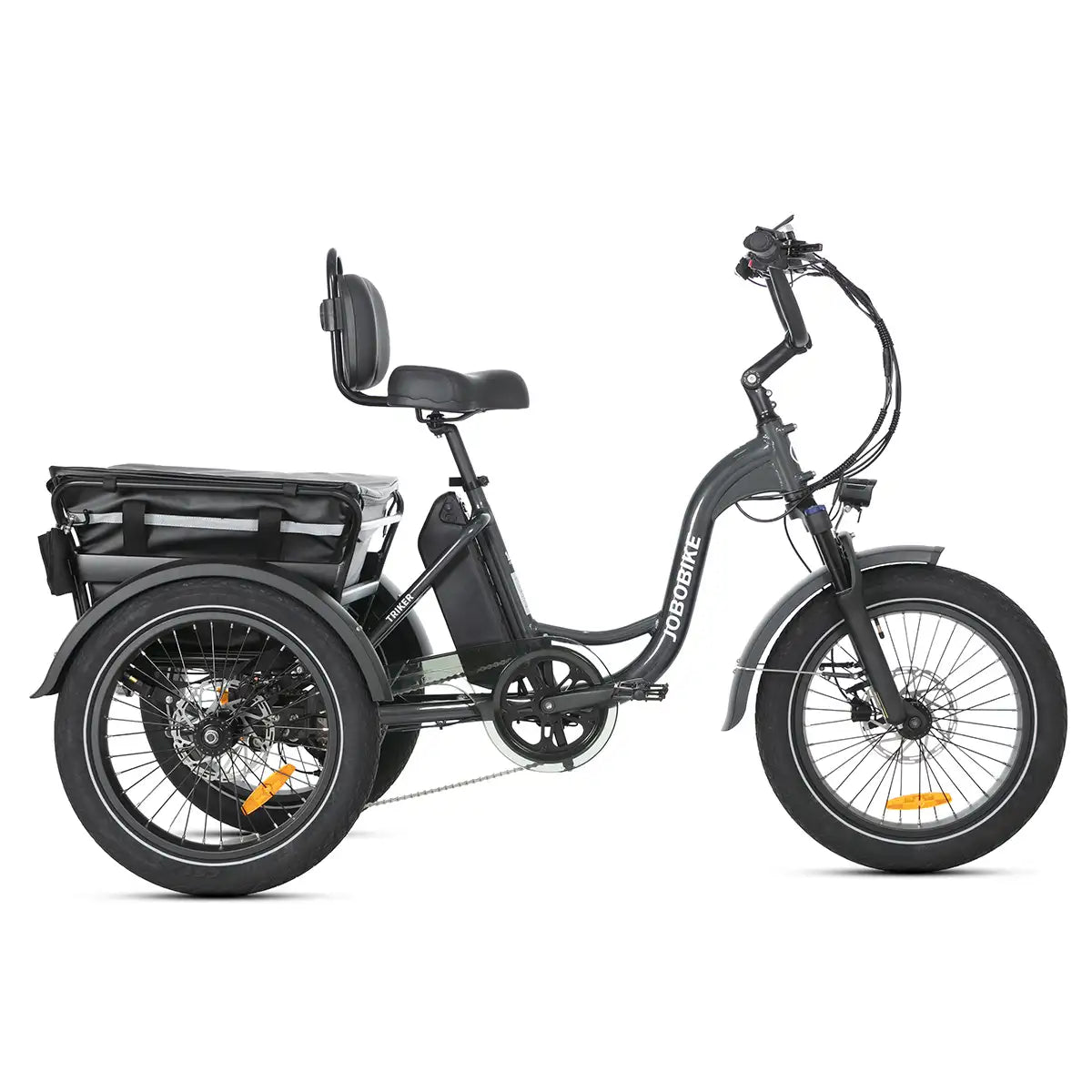 JOBOBIKE Triker to doskonały wybór dla tych, którzy szukają stabilnego i wszechstronnego pojazdu elektrycznego. Trójkołowa konstrukcja zapewnia wyjątkową równowagę oraz bezpieczeństwo podczas jazdy, eliminując ryzyko przewrócenia. Dzięki dużej ładowności i praktycznemu designowi, sprawdzi się zarówno w mieście, jak i na terenach wiejskich. Triker to sprawdzone rozwiązanie dla seniorów, początkujących użytkowników oraz wszystkich, którzy potrzebują niezawodnego pojazdu do codziennych zadań.